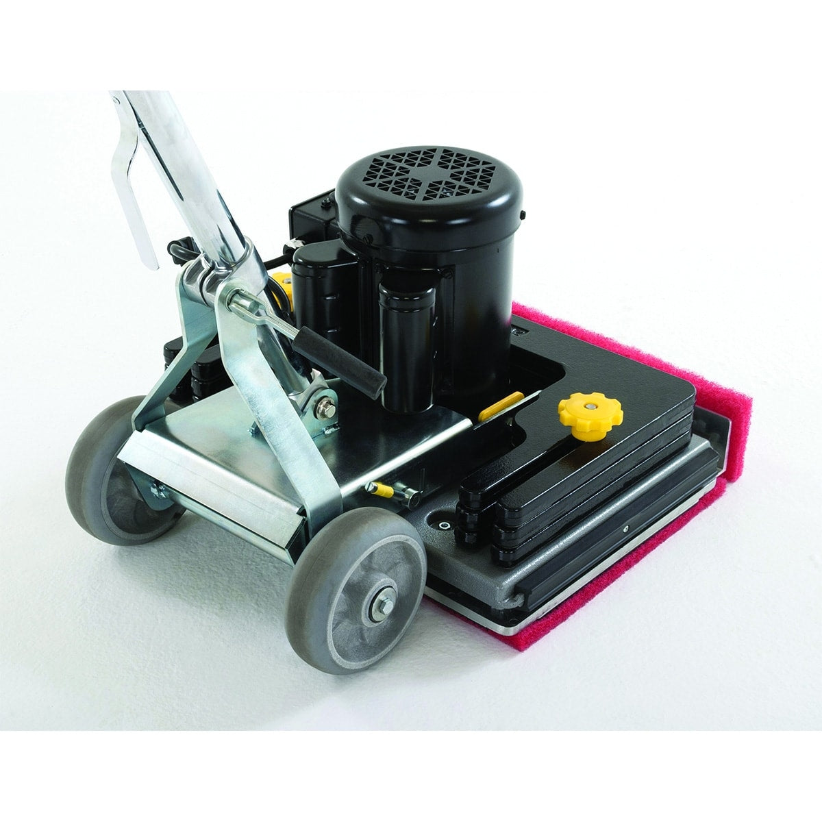 Don’t let the compact size fool you! The Clarke FM40 is a beast when it comes to orbital floor buffers. The machine comes standard with a heavy duty 1.5 horsepower motor, 160 pounds of down pressure and a 3,540 RPM pad driver. The floor buffer weighs 98 pounds by itself, but also comes with 3 weights weighing 21 pounds each. This gives you a full 161 pounds of down pressure for maximum scrubbing and stripping effectiveness.